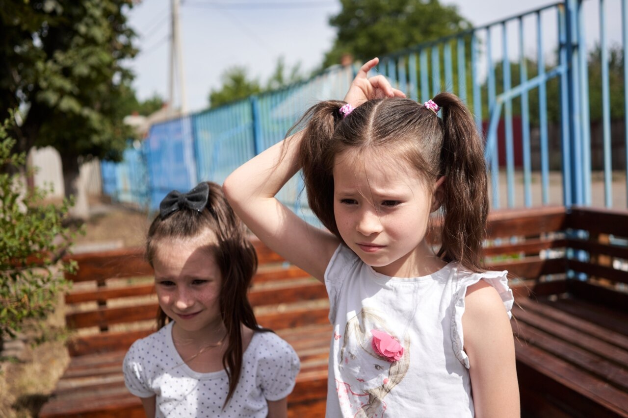 Поруч із ним у шкільному дворі крутяться двоє дівчаток. Сестри-другокласниці Карина та Авігея Маркови не пам’ятають рідного Донецька, але чітко ідентифікують себе переселенцями і прислухаються, коли вчитель просить місцевих учнів допомагати новеньким адаптуватися.