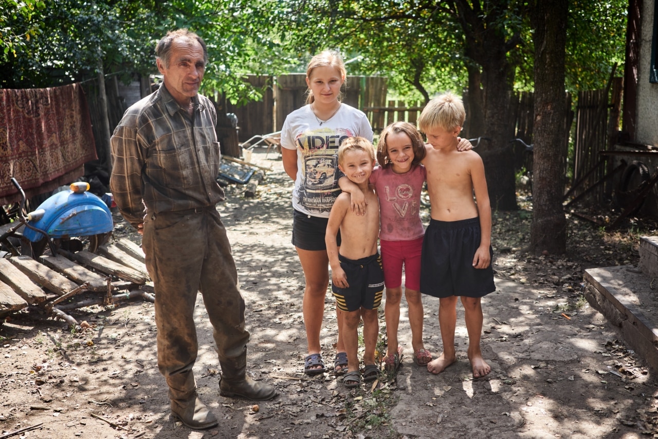 52-річний Василь Мінус – батько-одинак. Разом із п’ятьма дітьми він живе у прифронтовому Золотому Луганської області. Шибеник з паркану під грушею – його середній, 9-річний, син Данило. Є ще старший Богдан, якому 16, і 7-річний Давид. Дівчаток двоє: Аліна, їй 15, та найменша Карина, якій всього шість.