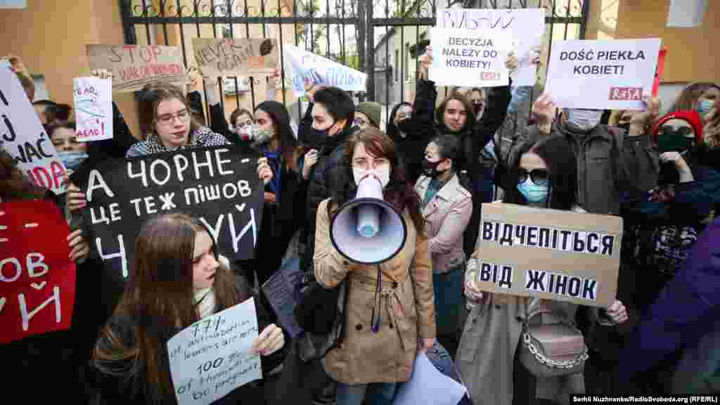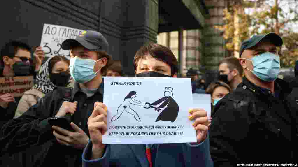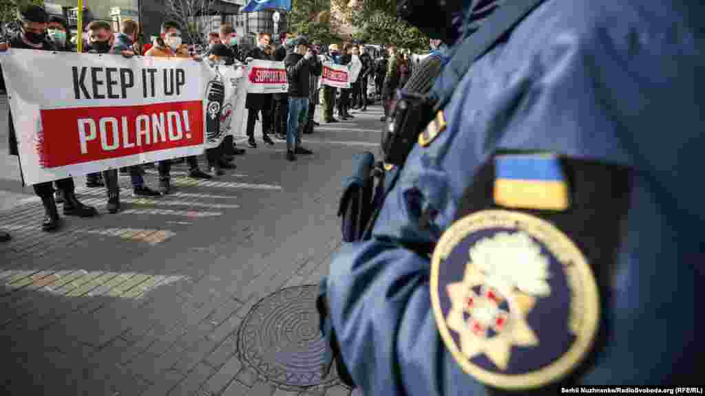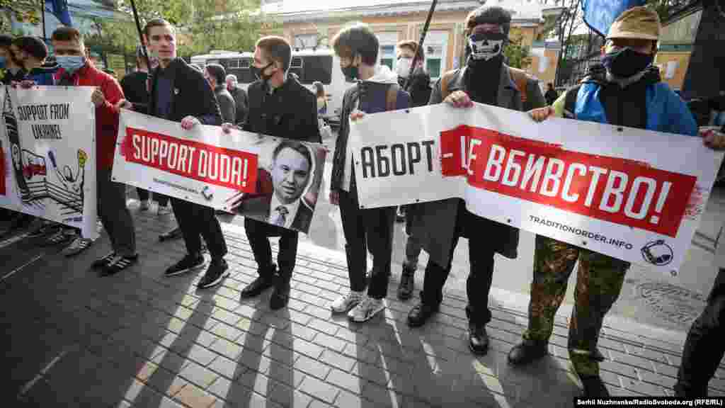 У столиці України кілька десятків людей прийшли до посольства Польщі під гаслами «Нашi тіла, наше життя, наша держава, наше право!», щоб підтримати польських жінок в акціях проти заборони абортів. Акція солідарності була запланована на 13-у годину. Однак місце біля посольства раніше зайняли члени ультраправої організації «Традиція і порядок», які вийшли підтримати рішення польського суду. Учасники акції підтримки польських жінок змушені були проводити акцію на протилежному боці вулиці. Учасники обох акцій обмінялися «кричалками», однак пройшли без сутичок.