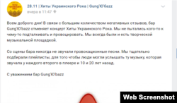 «Музика поза політикою», «скасуйте «ДНР»», «блокадний Ленінград» та «укропи». Така риторика зараз переважає у коментарях під повідомленням про заборону української рок-музики у донецькому клубі «Gung'Ю'бazz». Невже в окупованому Донецьку досі відбуваються українські концерти, хто на них ходить, і чому скасували черговий? Розповість Радіо Донбасс.Реалії.