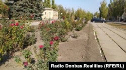 Троянди у центрі міста. Нічого кримінального, але зазначимо, що угруповання «ДНР» передусім у підконтрольних йому містах висаджує квіти та прибирає вулиці, навіть якщо навколо руйнація, депресія і безробіття: такий собі маркер СРСР.