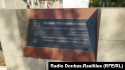 А ось по цій стелі ви можете скласти враження про стилістику в оформленні пам'ятників, якої притримувались на Донбасі ще до війни: радянські ордени підприємства ММК ім. Ілліча та цитата тоді ще живого його багаторічного очільника Володимира Бойка. Та яким боком металургія до приморського міста та за що металурги облаштували алею для Новоазовська, спитаєте ви?