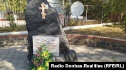 А це - меморіал засновникам Новоазовська (чи, як він тоді називався, станиці Новомиколаївська) – донським козакам. Ця станиця стала найзахіднішою на Азовському узбережжі, а тому користувалася посиленою увагою тодішнього царя Миколи I. Знак з'явився на честь 150-річчя Новоазовська, яке відсвяткували 1999-го року.