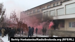 Возле офиса ветераны зажигают красно-черные файеры. На окнах появляются надписи: «Штепа геть», «ОПЗЖ на нары», «2014 не пройдет».