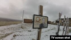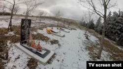 Із самого верху – знову поховання. На могилах надписи – батальон «Восток». «Восток» – це збройне формування бойовиків російських гібридних сил. Ватажок – Олександр Ходаковський, колишній командир спецпідрозділу «Альфа» Управління СБУ Донецької області, який перейщов на бік російсько-гібридних сил. Цей батальйон був створений на початку травня 2014 року.