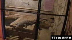 Всередині будинку різні мавпи у дуже маленьких клітках, папуги, рептилії. І невеликий крокодил.