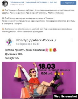 Пока приобрести себе качественный фирменный товар дончане могут только так – или же по интернету. Потому как в ОРДЛО официально нет брендовых маркетов.