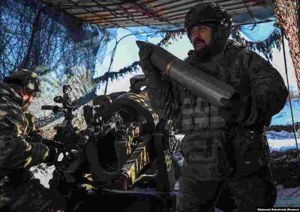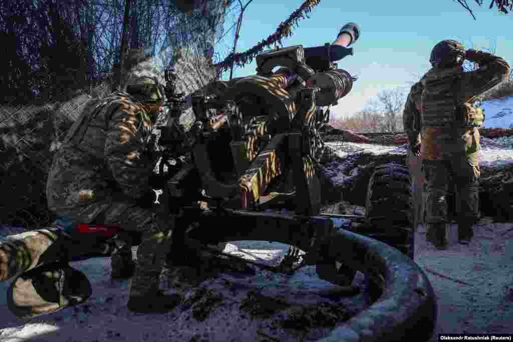 Українські військові ведуть вогонь по російських позиціях під Мар'їнкою
