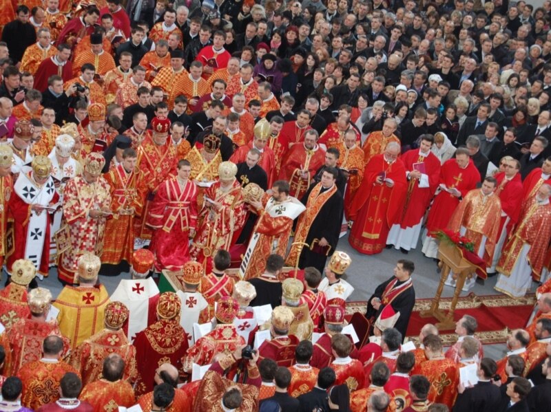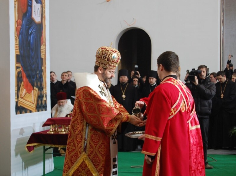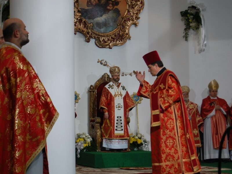 Церемонія інтронізації владики Святослава розпочалася з хресної ходи, у якій взяли участь усі прибулі представники духовенства. Священики пройшли від церкви Благовіщення Богородиці до Патріаршого собору, де відбулося предстоятельське богослужіння.