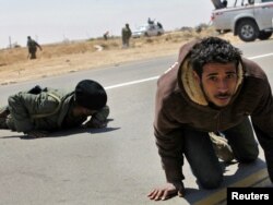 Лівійські повстанці ховаються від куль під час сутички з урядовими військами у портовому місті Бреґа, 4 квітня 2011 року