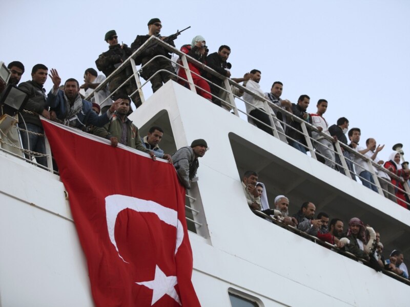 Турецьке судно в Бенгазі, звідки турецьким морякам вдалось евакуювати ще 100 поранених, Лівія, 4 квітня 2011 року