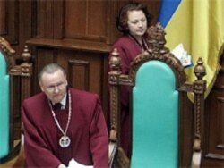 Голова Конституційного суду Іван Домбровський та суддя-доповідачка Сюзанна Станік перед початком засідання КС. 17 квітня 2007 р.