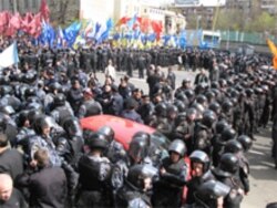 Київ, 18 квітня 2007 р.Судді таки потрапляють всередину і розпочинають засідання. А представники опозиції заявляють, що спецназівці брутально застосовували силу.