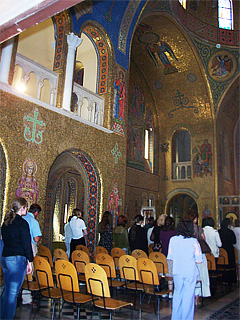 Церкву освятили у 1969 році. Хрестово-купольний храм захоплює відвідувачів простотою споруди і внутрішнім затишком, оповитим позолоченою мозаїкою. Це оздоблення робив український маляр Святослав Гординський, а іконостас створив монах-художник Ювеналій Мокрицький.