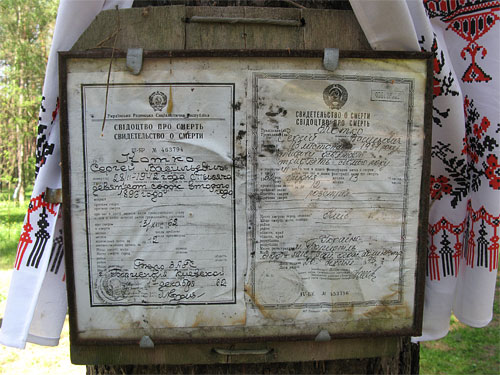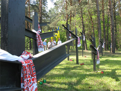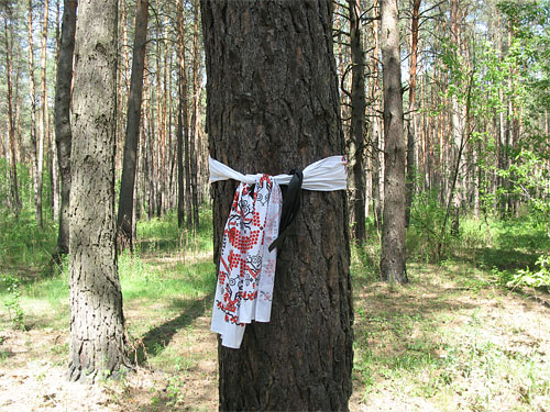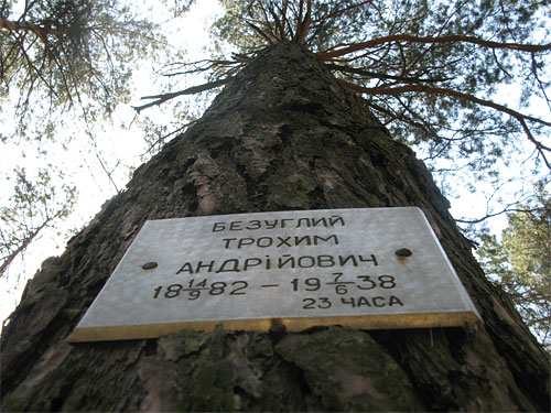 |  |  | Скрізь по лісу на деревах висять пам''ятні дошки розстріляним у Биківнянському лісі |  |