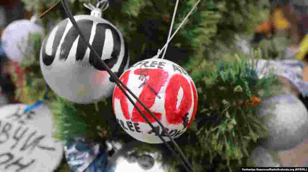 На площі встановили ялинку, яку прикрасили іграшками з нагадуваннями про полонених