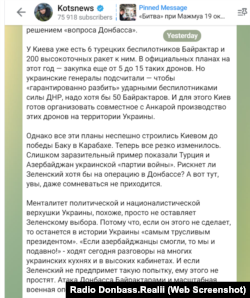 Загальний меседж у постах та коментарях зводиться до того, що загострення та використання Україною турецького безпілотника призведе до масштабної війни із залученням Росії.