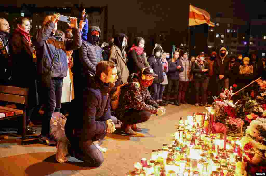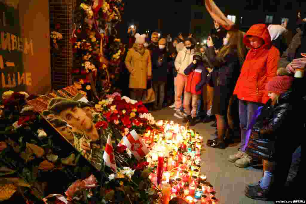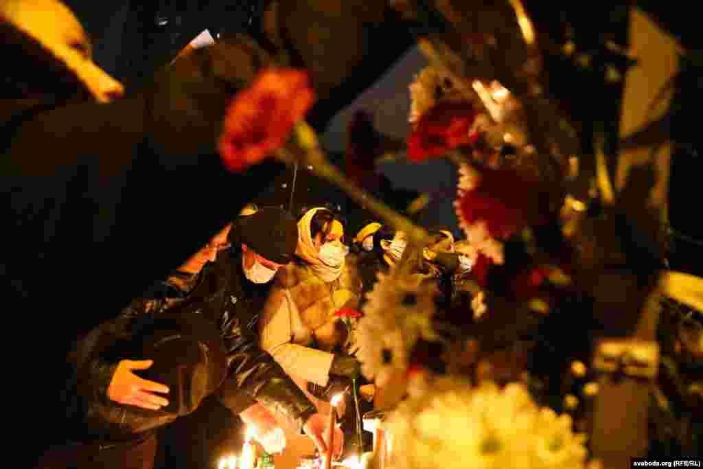 12 листопада у Мінську після повідомлення про смерть в реанімації Романа Бондаренка, на «Площі Змін» почали збиратися небайдужі білоруси. Вони несли квіти і свічки.