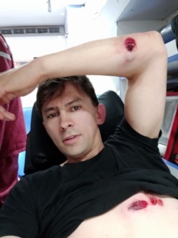 «Одна гумова куля влучила в передпліччя – глибинне поранення. Були ще два дотичні поранення – у грудну клітку та в лопатку. Мабуть, пощастило, якщо б корпус був під іншим кутом, могло бути набагато гірше.