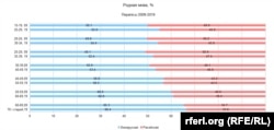 Графіки 3 і 4 показують дані про наймолодших із переписаних з інтервалом у п’ять років з огляду на важливість цих груп для прогнозування майбутнього.