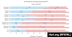 Приблизно така ж динаміка спостерігалась у відповідях про мову домашнього вжитку – у відповідях на запитання перепису «Якою мовою ви зазвичай говорите вдома?». Торік 26% назвали рідну мову білоруською, у 2009 – 23%, у 1999 – 36,7%. Що вплинуло на те, що білоруси знову повертаються до рідної мови?