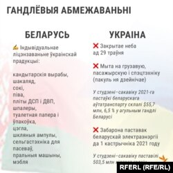 На закриття українського неба білоруська влада відреагувала моментально. Під режим індивідуального ліцензування в Білорусі потрапили українські кондитерські вироби, шоколад, соки, пиво, ДСП і ДВП, шпалери, туалетний папір і упаковка, цегла, скляні ампули, сільськогосподарська техніка для сіяння, пральні машини і меблі.