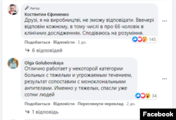 За словами Алли Мироненко, препарати з крові не виготовляються у великій кількості, тому коли мова йде про 66 добровольців, то не можна говорити, що це мала кількість. Інша річ, зауважує вона, – на яких термінах перебігу хвороби вводили цей препарат добровольцям. Якщо це пізні стадії захворювання, то навряд чи він буде здатним суттєво покращити їхній стан.