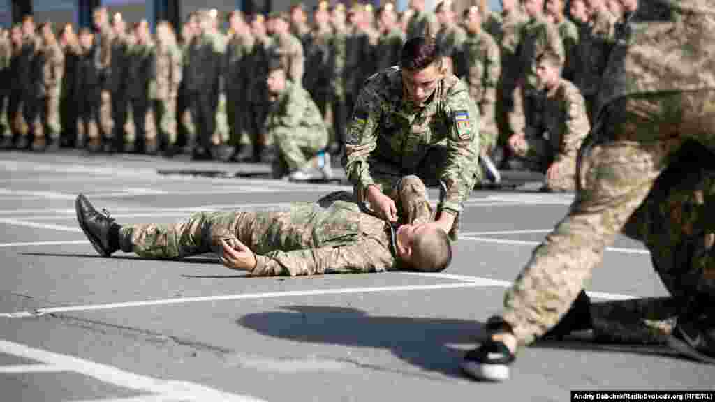 Усі присутні вшанували хвилиною мовчання загиблих на українсько-російській війні. Далі був концерт у виконанні ліцеїстів, показові виступи з військової майстерності. Не забули і про традицію – другий курс передав погони новоприбулим.