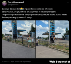 На одному з відео із скаргами на ситуацію в місцевих телеграм-каналах мешканець Донецька каже: «Я не розумію, через що такий серйозний дефіцит» і запитує працівника АЗС: «Ви не знаєте, з чим це пов’язано?» Той розводить руками.