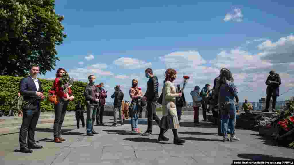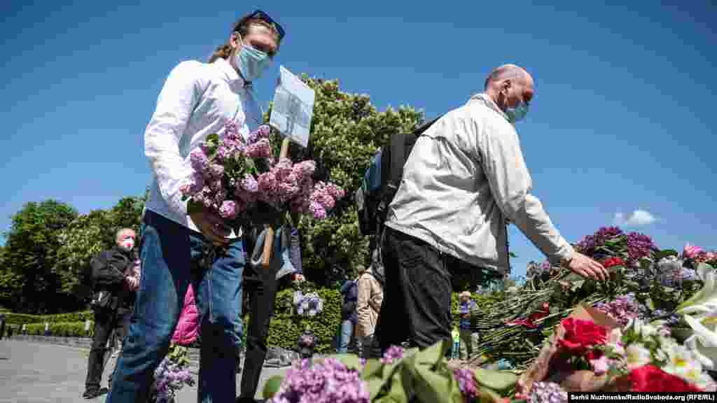 З ранку, 9 травня, до Вічного вогню у Парку Слави у Києві усі бажаючі несуть квіти, з нагоди Дня перемоги над нацизмом у Другій світовій війні. Поліція людей пропускає по двоє й попереджає про безпечна дистанцію в умовах епідемії. Крім того кожен обов’язково має одягнути захисну маску. Традиційно, заборонено носити комуністичну символіку, за наявність такої поліцейські складали протоколи. З квітами прийшов і очільник УПЦ (МП) митрополит Онуфрій, разом із народним депутатом Вадимом Новинським провели молебен. Раніше народний депутат заявляв, що у нього діагностували хворобу COVID-19. За неофіційною інформацією, минулого місяця коронавірус виявили і в митрополита Онуфрія, однак церква офіційно цього не підтвердила. Попри обмеження поліцією на вхід до Парку Слави, відкритою була територія «Національного музею історії України у Другій світовій війні». Детальніше дивіться у відео Радіо Свобода.