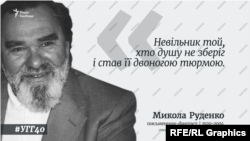 Микола Руденко, співзасновник Української Гельсінської групи, письменник-фантаст, правозахисник і дисидент. Він відмовився зводити наклепи на невинуватих, його перестали друкувати та взяли під нагляд. Його доля розбиває усі стереотипи кремлівської пропаганди.