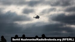 Вертоліт із президентом України Петром Порошенком на борту сідає на аеродромі.