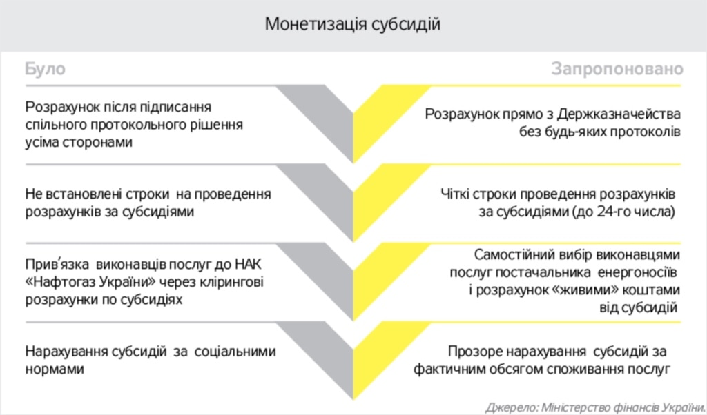 За програмою має змінитись система розрахунків по субсидіях із підприємствами-постачальниками комунальних послуг та енергоносіїв.