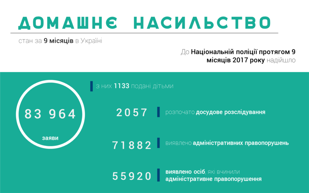 За статистикою Національної поліції, кількість звернень за фактами насильства в сім’ї – близько 130 тисяч у рік, потерпілі – переважно жінки.