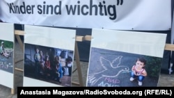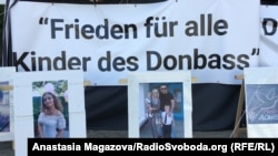 «Хватит воевать в Европе», «Мир всем детям Донбасса» и «Жизнь Донбасса – дети важны» – таковы три ключевых лозунга, которые виднеются на установленных вблизи Бранденбургских ворот палатках, являющихся основой так называемой фотовыставки. Перед ними выставлены невысокие деревянные стенды с фотографиями детей.