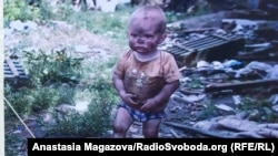 На одном из фото на фоне руин изображен совсем маленький мальчик. Несколько лет назад этот кадр активно распространялся в интернете, и он даже получил название «Мальчик с Донбасса ищет маму».