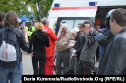 Після нападу на ходу по місту мчали швидкі, пораненим надавали допомогу, асфальт було залито кров’ю, а на узбіччях лежали шматки закривавлених українських прапорів.