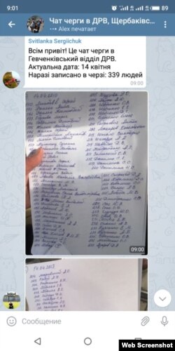 В Шевченковском районе Киева, где очередь исчислялись сотнями человек, решили применить инновации. Там сгенерировали QR-код для записи в очередь и создали чат в «Телеграме», где люди делились информацией об очереди.