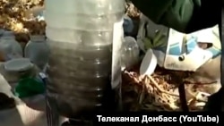 «Ось подивіться, будь ласка, наша вода – «чиста, як сльоза», яку ми зараз будемо фільтрувати. Для того, щоб забезпечити життєдіяльність нашого організму. Ось такий вигляд вона має на вході, а такий вигляд вона має на виході», – показує рідину жовтуватого кольору військовий.
