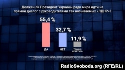 Заради миру 55% респондентів на такі переговори згодні. За даними цього ж дослідження, прямі переговори з Росією підтримує 75% українців.