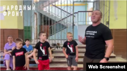 А до маленьких спортсменів Краснодона (після декомунізації Сорокине) на Луганщині приїхав російський чемпіон світу з боксу Денис Лебедєв. Розказував про своє життя та спорт, ніби жодної політики. А на футболці напис: «Команда Путіна».