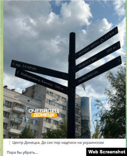 «Побачили вказівник чи табличку українською мовою – повідомляйте у спеціальний чат. І комунальники оперативно її замінять». Це заклик голови підконтрольної Росії «Общественной палаты ДНР» Олександра Кофмана до донеччан.
