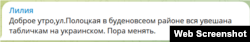 За 9 днів після запуску чату – лише 219 підписників та кілька десятків коментарів. Від фото «неправильних» табличок і закликів прибрати їх – до обурення такою ініціативою.