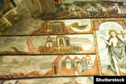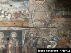 Якби не музей, невідомо, що б було. У 1959 році, коли закрили церкву, там купа начиння і всього, не все передали по церквах, багато що зникло, але збереглися розписи, ікони. Відкрили тоді відділ музею, це все протрималося до початку 90-х. Ну, ми всі розуміємо, що незалежність і так далі. Це певний момент революційності, хвиля така, складна, ну, і почалася боротьба за те, що «віддайте» (церкви – ред.). Тоді віддали низку храмів, причому не просто храмів. Є ж не зовсім пам’ятки, просто дерев’яні храми, які були пам’ятками. Ікони старі. Розписи? Так тут немає фрагмента, там... Масляною фарбою.