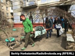 Местные возвращаются к убежищам с продуктами. Ко мне подходит женщина и спрашивает: можем ли мы эвакуировать лежачую бабушку? Конечно можем! Владимир и Леша Ладыка несут носилки. Заходим в квартиру.