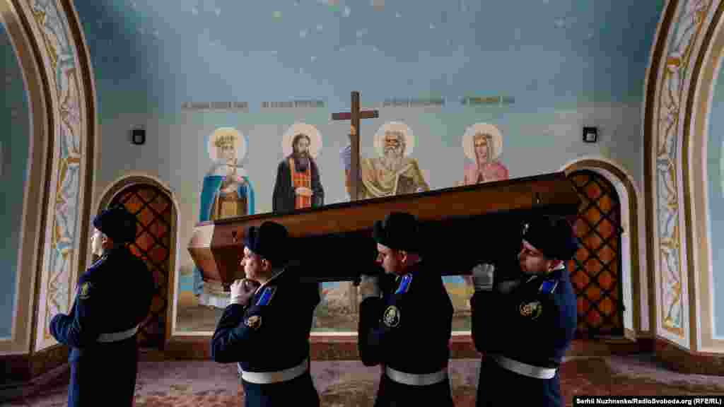 У Михайлівському Золотоверхому соборі у Києві відбулося прощання із старшим лейтенантом, командиром бойової снайперської групи розвідки ОЗСП «Азов» НГУ Ігорем Линдюком (Єгерь)