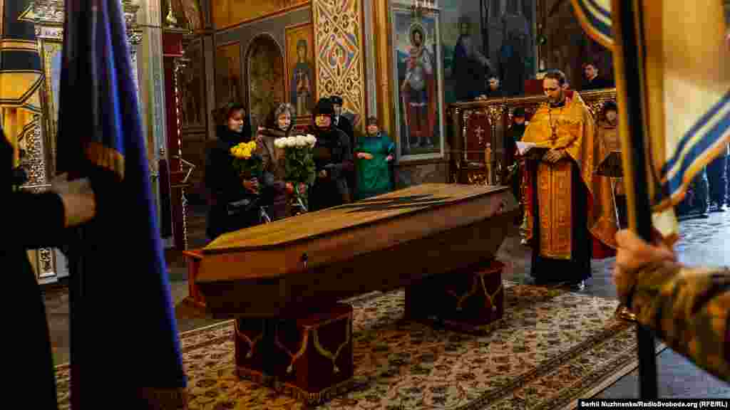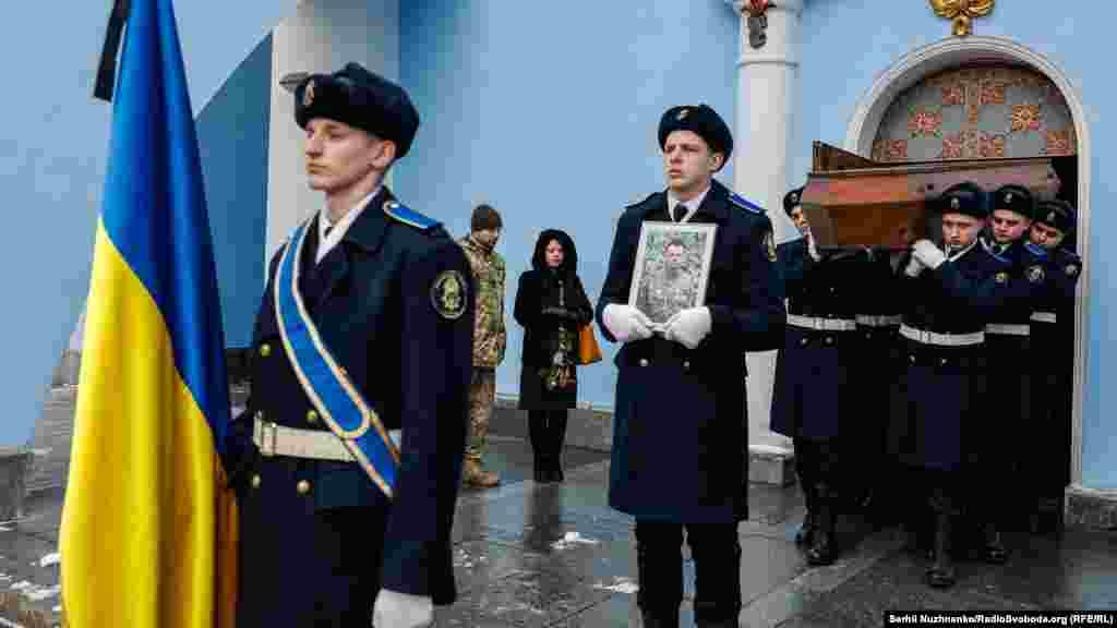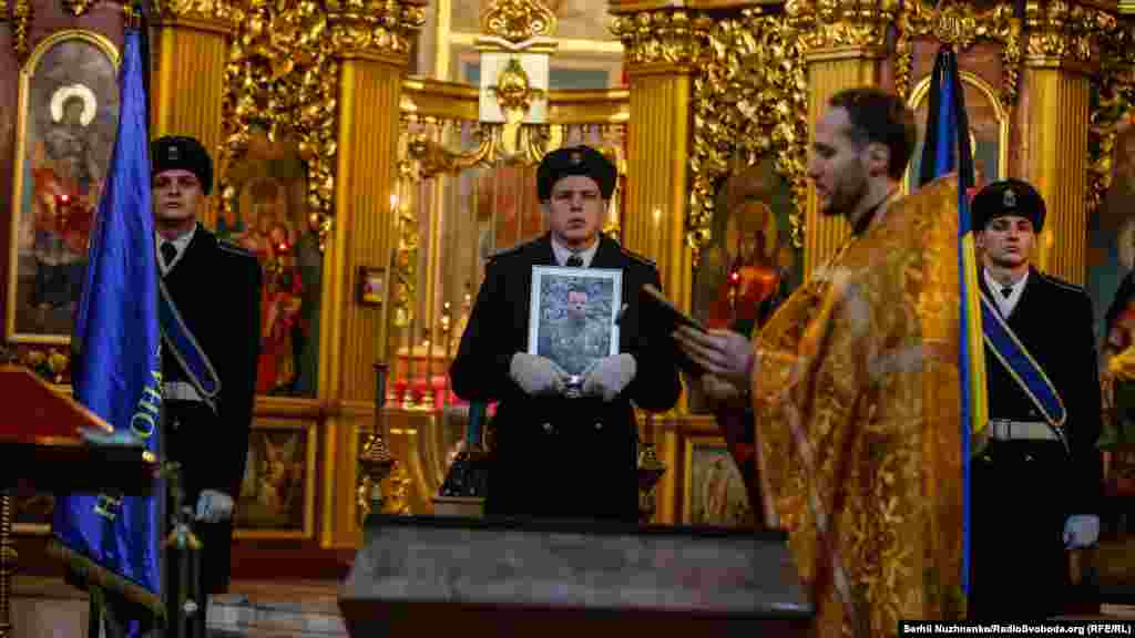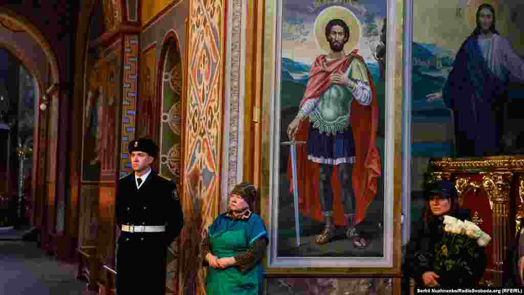 Прощання у Михайлівському Золотоверхому соборі у Києві із старшим лейтенантом, командиром бойової снайперської групи розвідки ОЗСП «Азов» НГУ Ігорем Линдюком