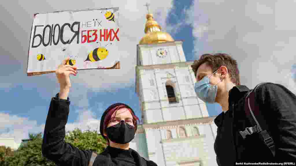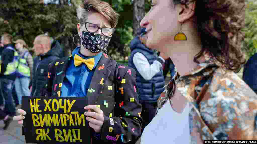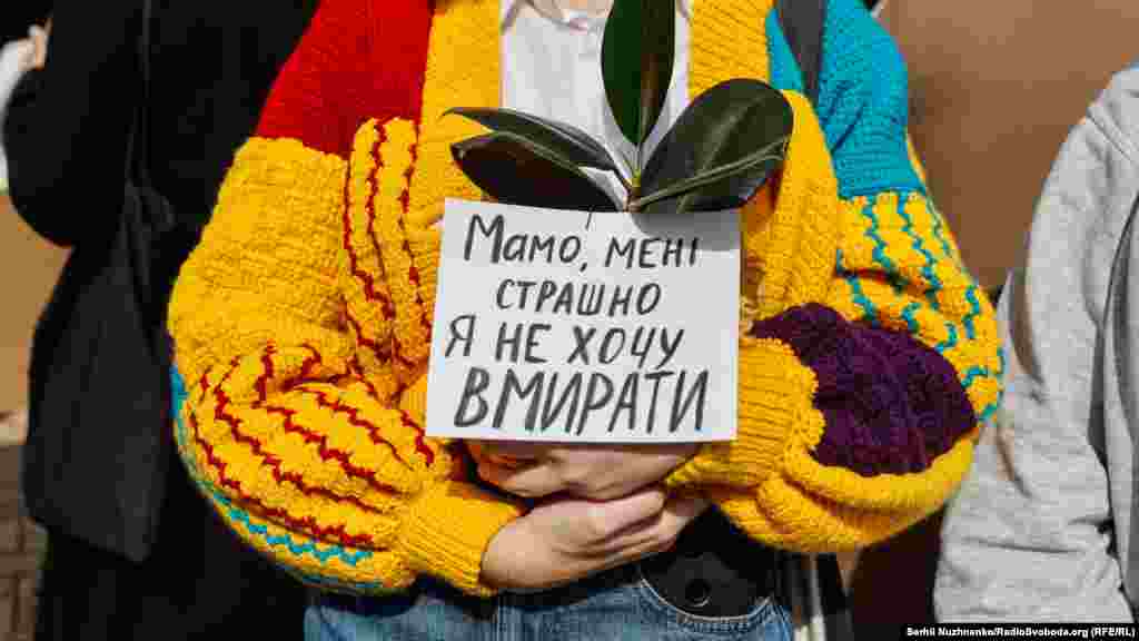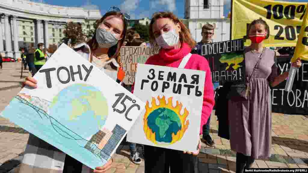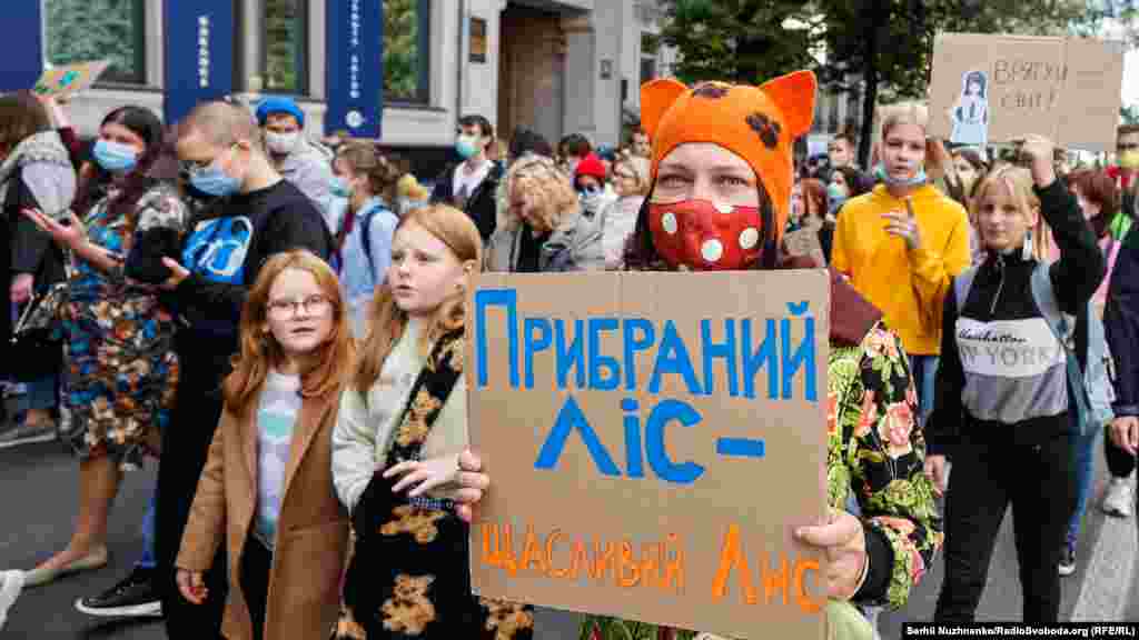 Вони тримали плакати: «Тваринництво вбиває планету та тварин», «Тікати не буде куди», «Наші податки – на захист клімату», «Збивай температуру – приймай зелені ліки», «Обирай еко замість его!», «68% хребетних зникло. Ми наступні?», «Навколишнє середовище в пріоритет!» та інші