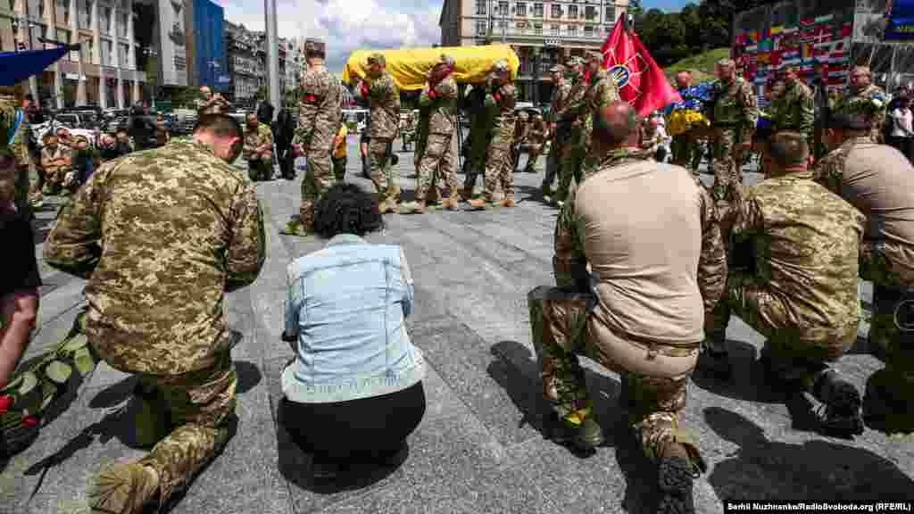 У Києві на Майдані Незалежності попрощались із командиром батальйону «Карпатська Січ» Олегом Куциним