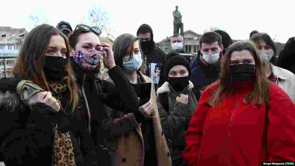 Несколько десятков человек собрались на центральной площади в Симферополе. В этот день здесь должен был пройти митинг в поддержку российского оппозиционера Алексея Навального